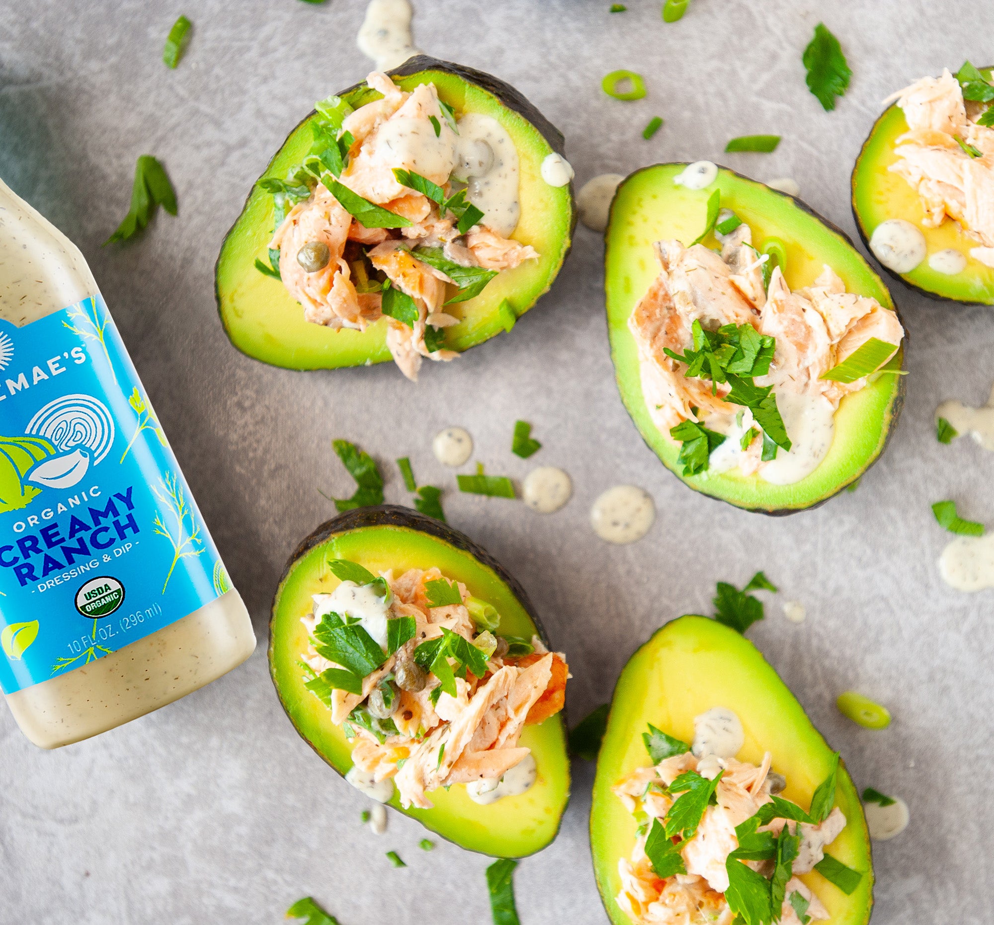 Lookin for healthy fats?? These Avocado Boats are a keto dream! Salmon, Avocado and our Creamy Ranch mixed with just the right blend of seasoning. We like them as a light summer dinner, lunch, or serve 1/2 each as a app at your next dinner party.