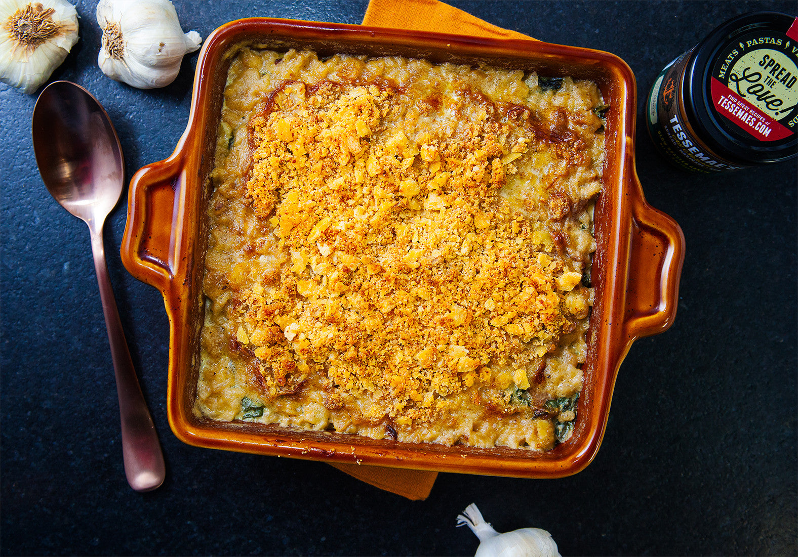 Truth: At our Thanksgiving shoot, there were a few skeptics. (Oyster, what?!) One bite and lives were changed. This dish was the best part of our meal and will be a staple in Tesse homes for years to come. It's comforting, rich and creamy (but those dark greens sure make it seem a little less sinful)! It's smokey from the bacon and crisp from the cracker crust. Just do yourself a favor and make this one.