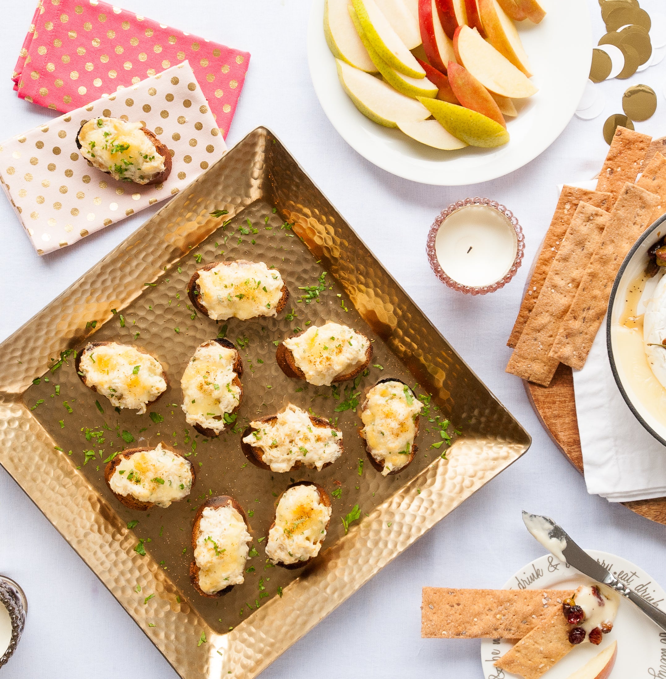 Classic Maryland crab dip is welcome at ANY party, but we gave it a little classing up for our Holiday spread. The dip is spooned on crostini, then topped with cheese and baked. The perfect combo in each bite