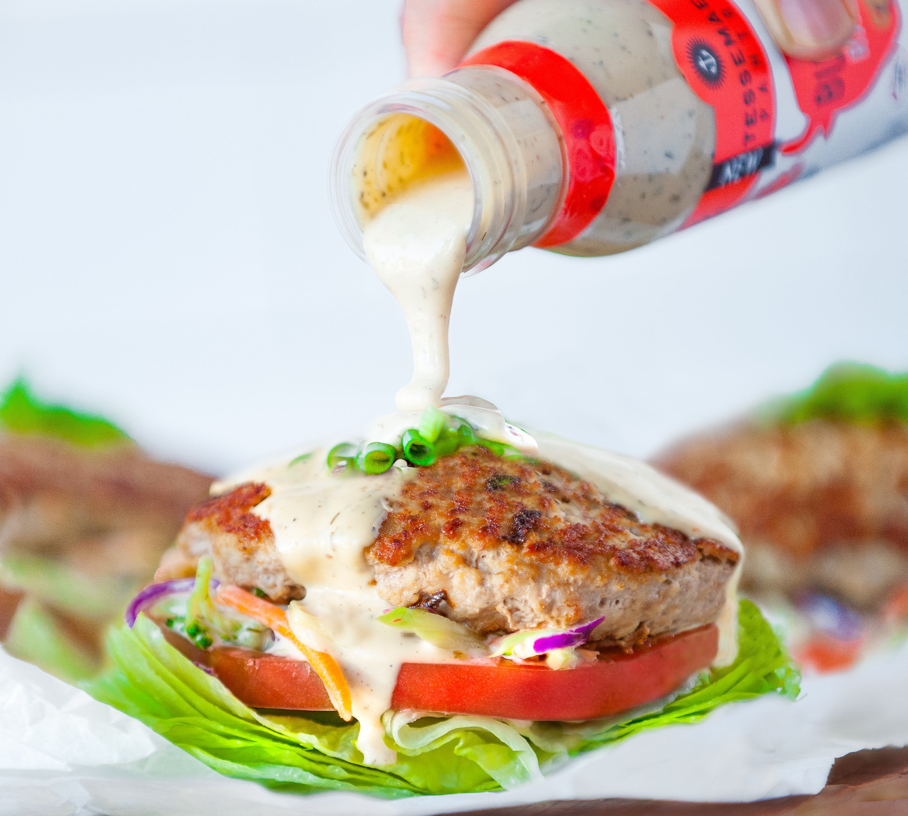 What's not to like? These juicy turkey burgers are smothered with our new fav flavor of ranch dressings and piled over sweet Summer tomatoes. Must make tonight!