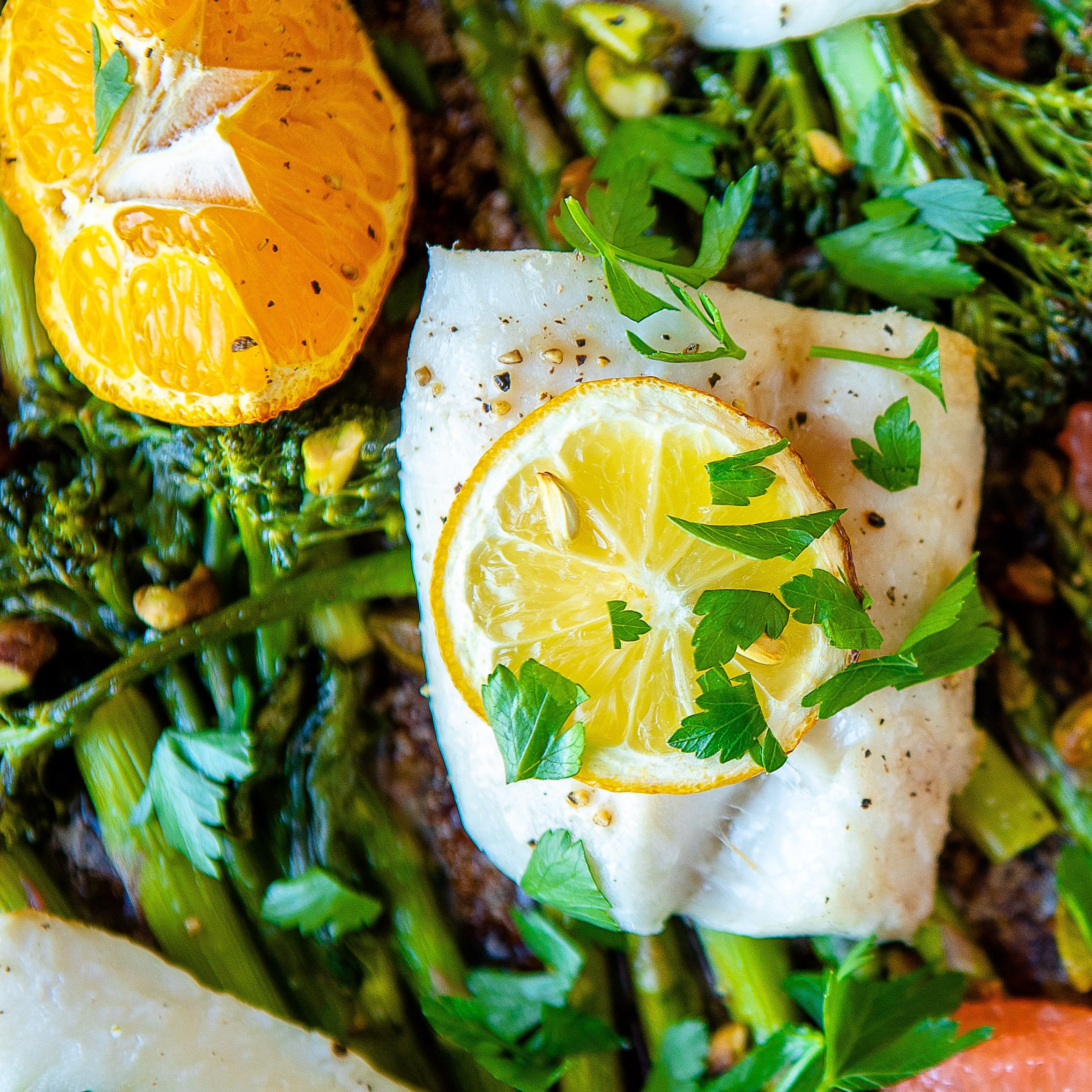 We love sheet pan meals for the oh so easy prep and clean up! This delicate fish roast has the best of Winter citrus, plus our fav spring veggie... asparagus! The combo is so bright and fresh it's sure to become a favorite.