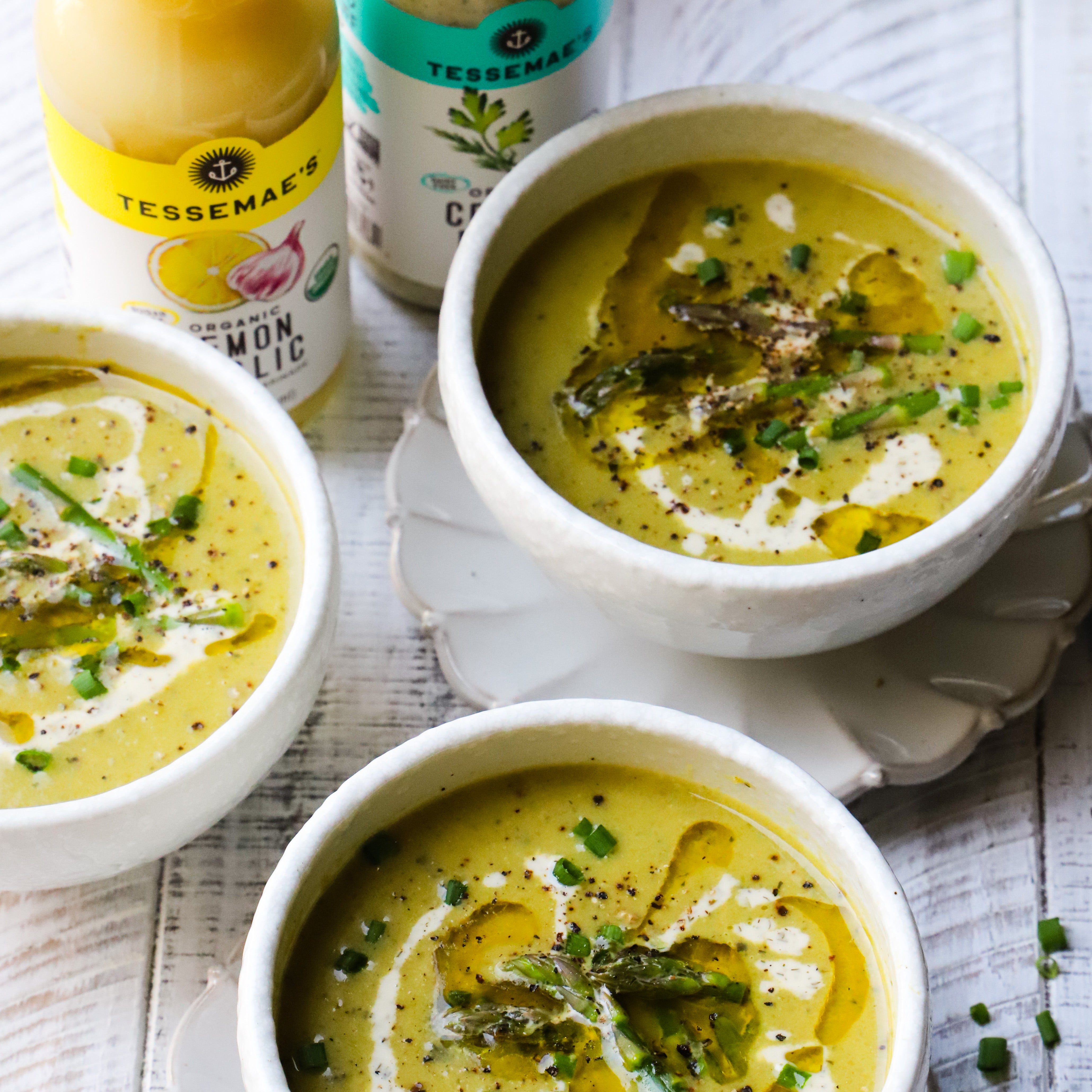 We cant wait for the first asparagus of the season to start popping up at the market! Be prepared with this easy and delicious soup! A drizzle of Creamy Ranch makes it extra special.