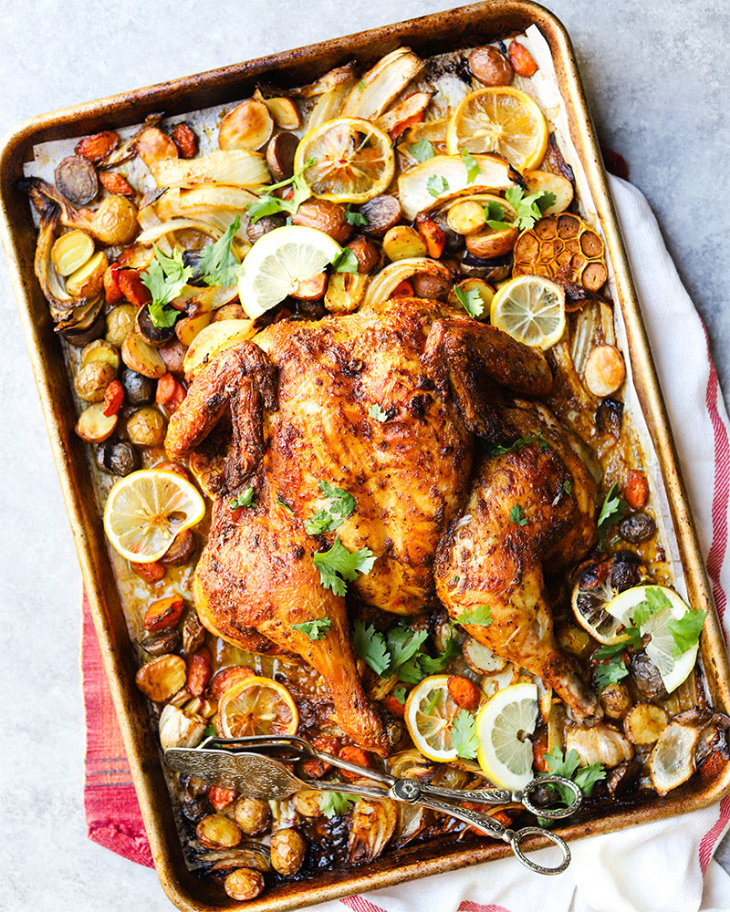 This whole roast chicken is so much easier than it looks! The marinade makes it super delicious for the whole family.