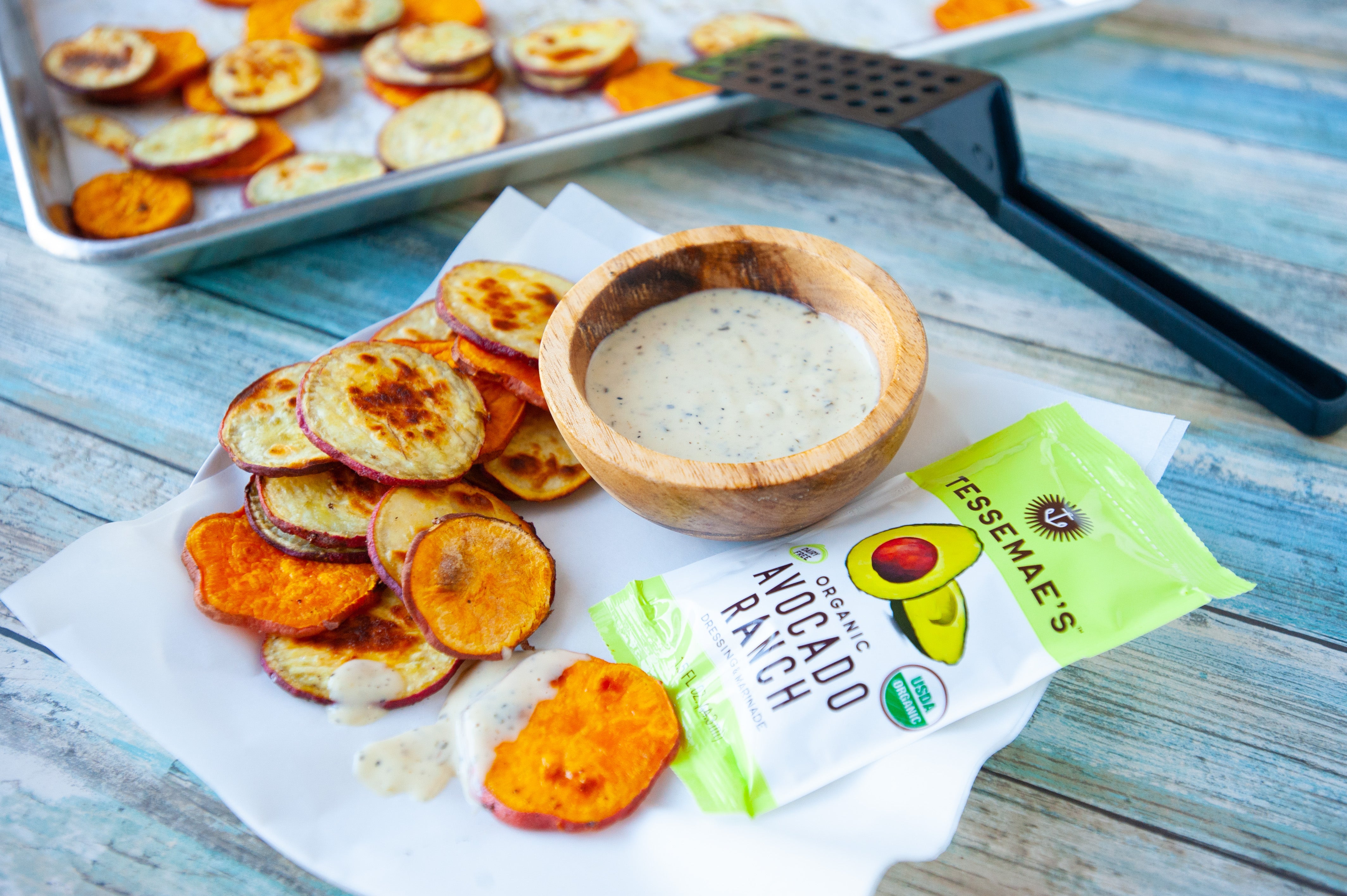 So easy it barely needs a recipe! Just slice sweet potatoes, toss with Lemon Garlic on a baking sheet, season with salt and pepper, and bake at 400 until tender and browned. The most important step?! Dip those babies in Avocado Ranch!!