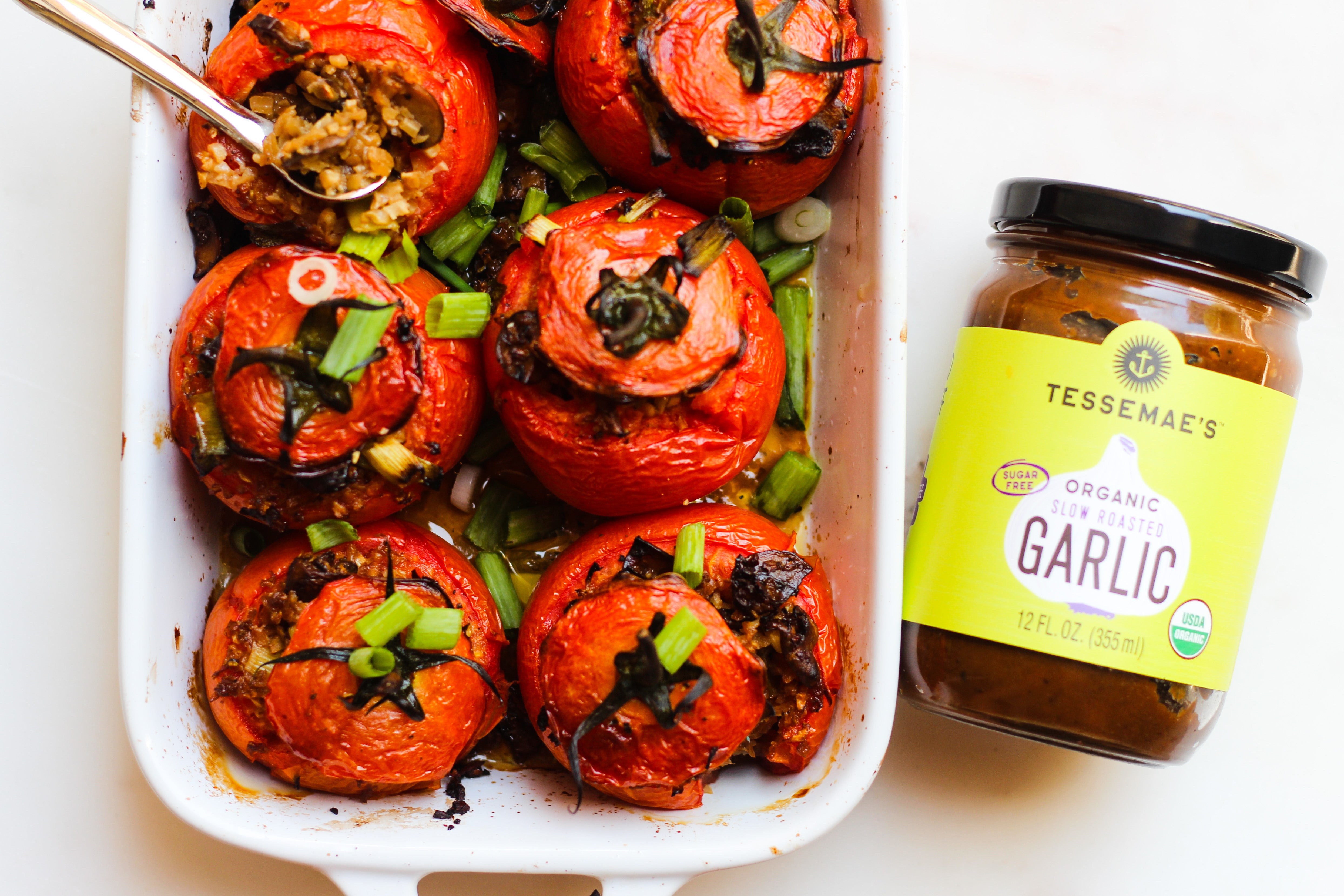 Stuffed Tomatoes with Garlic Mushroom Cauliflower Rice