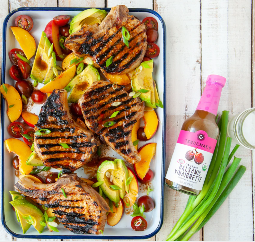 Grilled Pork Chops with Tomato, Nectarine & Avocado