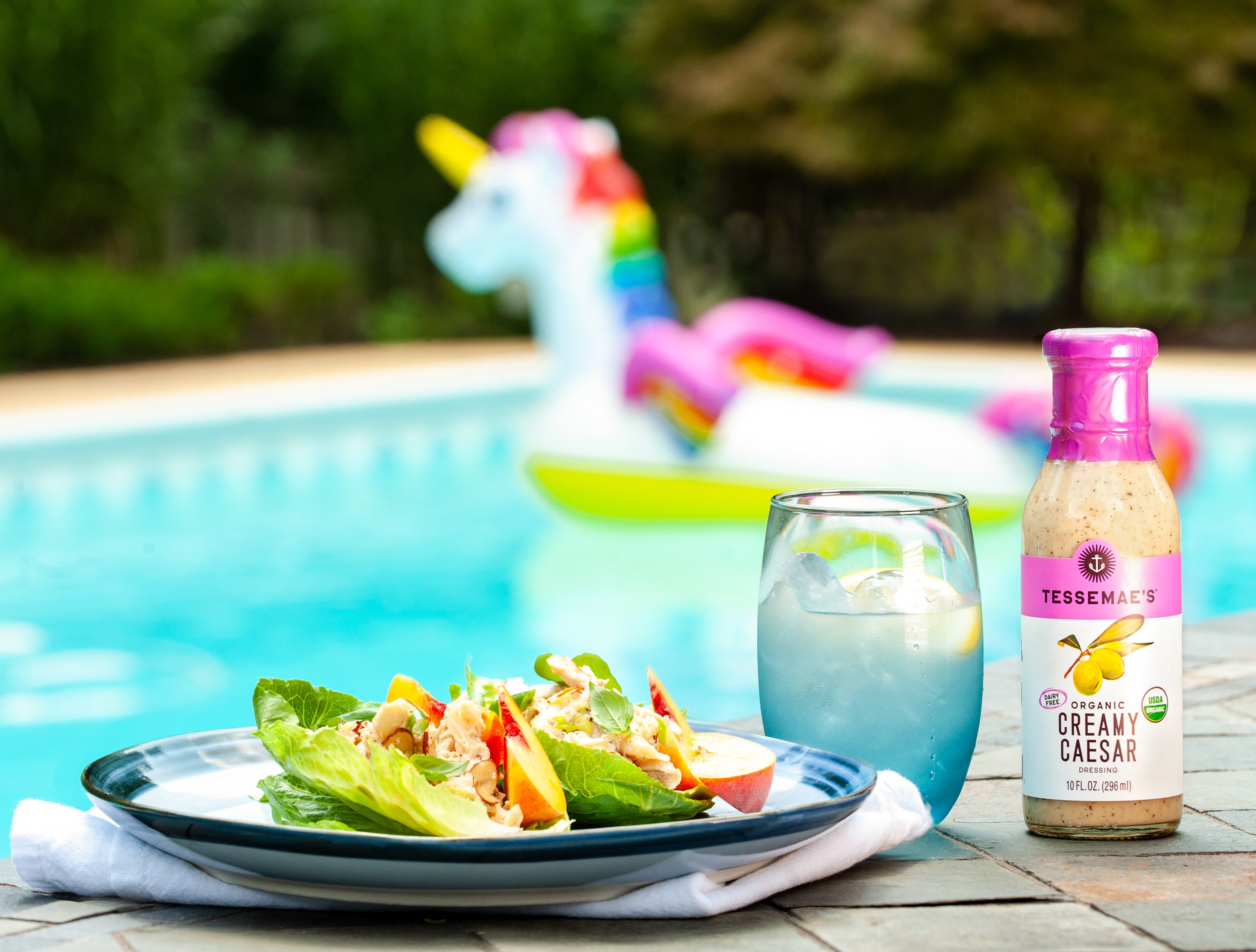 Throw the chops on the grill and while they cook toss together this juicy Summer salad. This meal could be done in under 20 minutes!!!