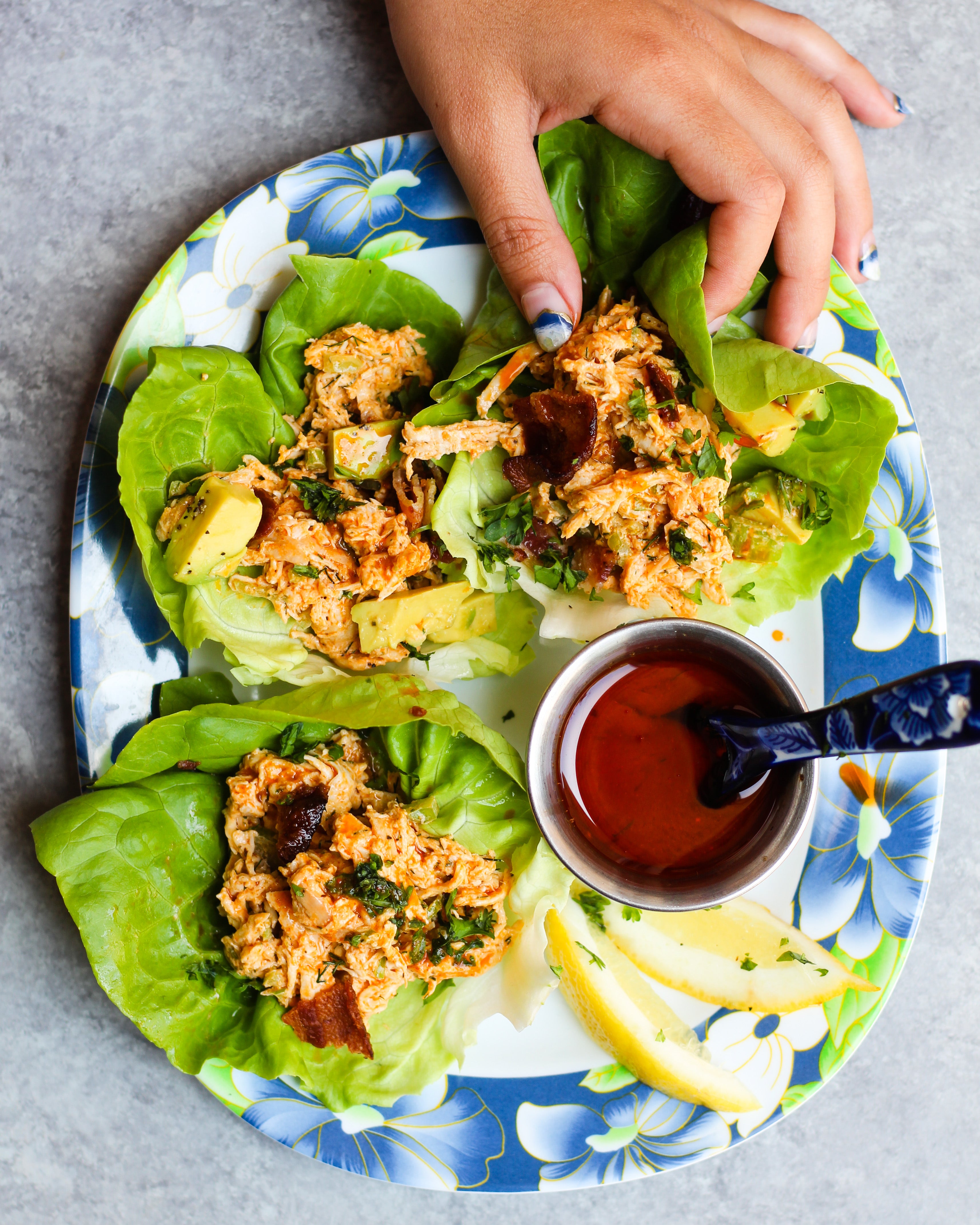 Buffalo Chicken & Bacon Salad Lettuce Wraps