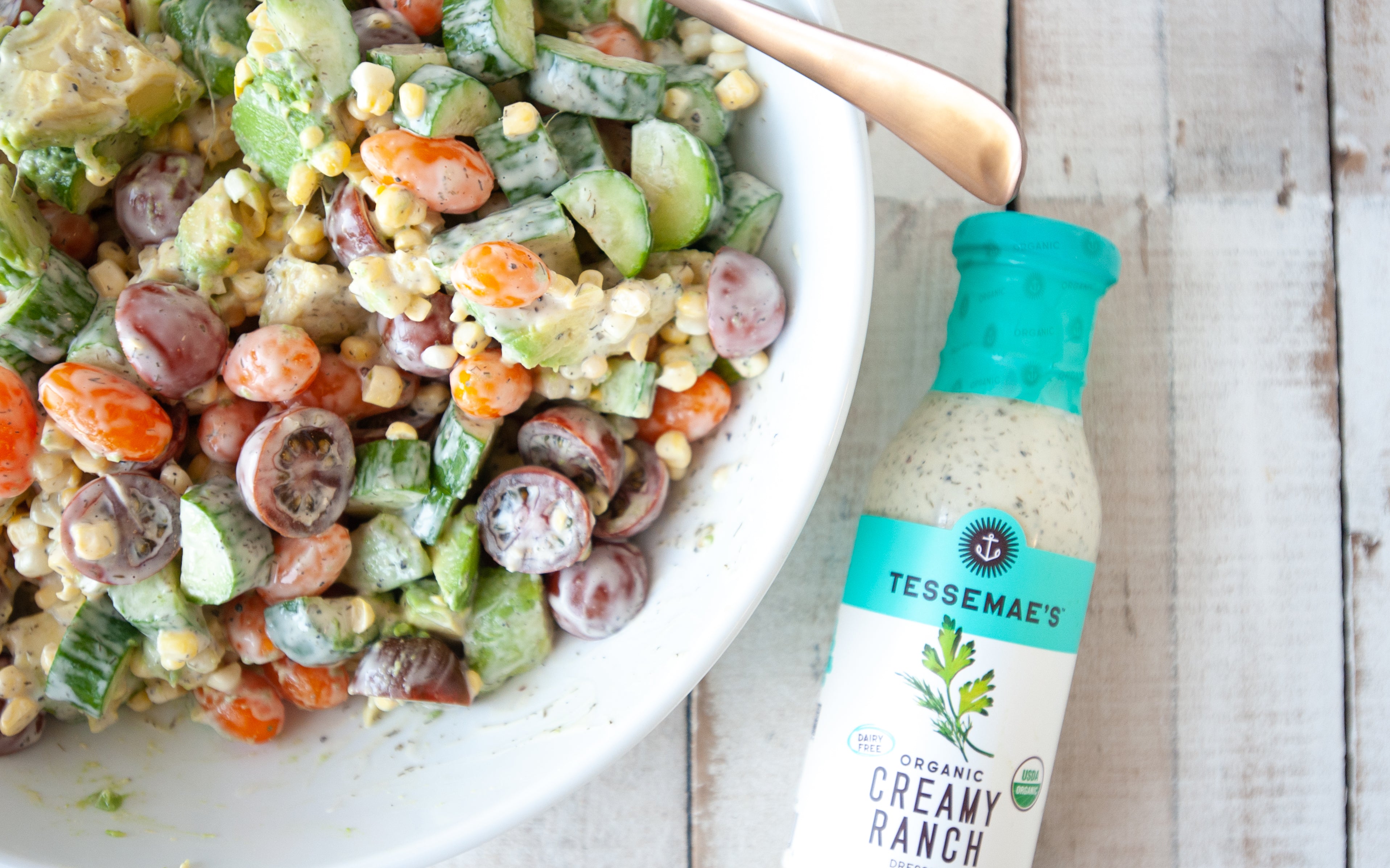 Creamy Tomato, Cucumber, Corn & Avocado Salad