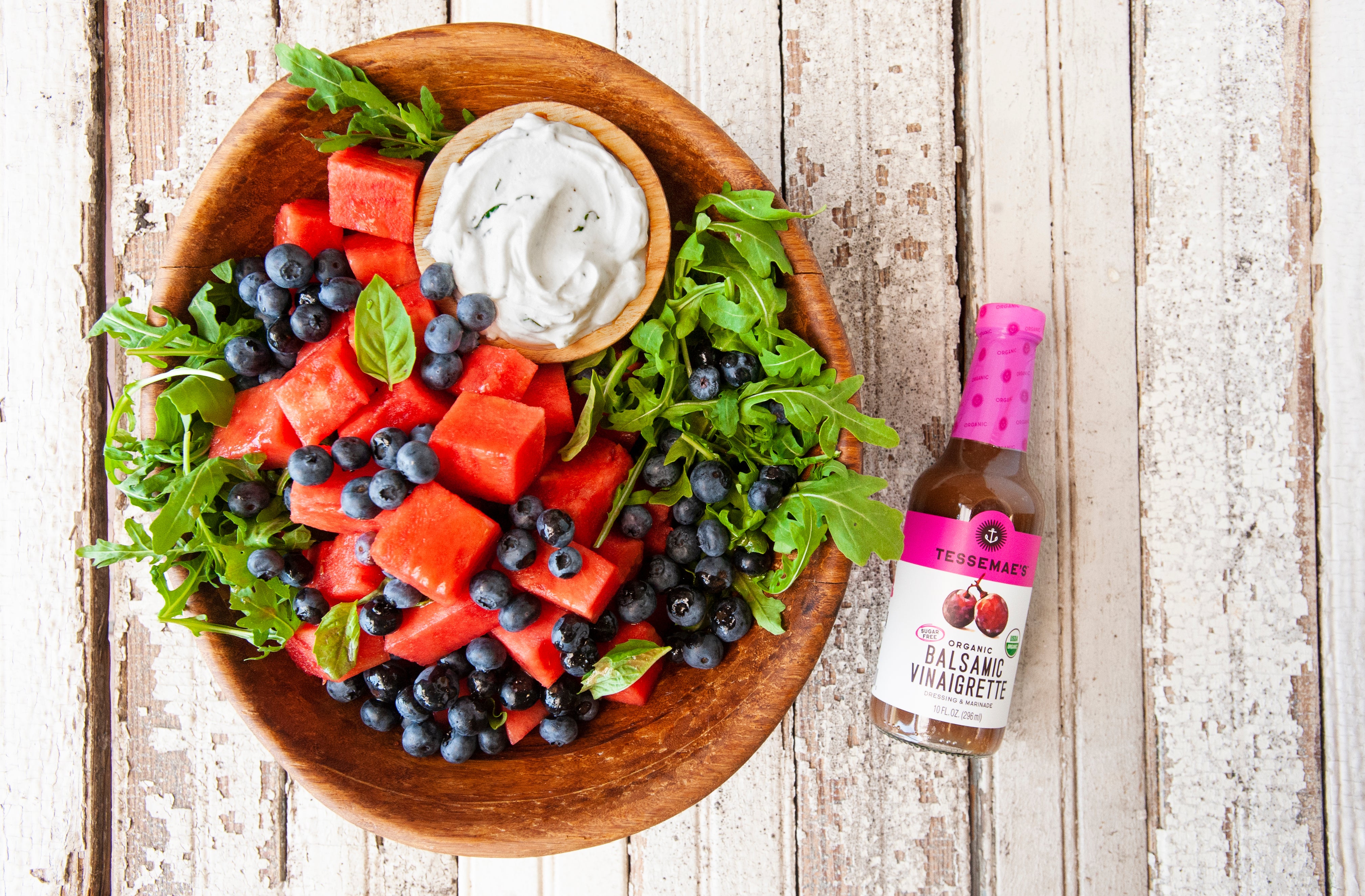 Watermelon has never tasted so good! Our Balsamic plus this savory basil yogurt makes this no- cook side dish something special. Serve with any simply cooked protein for a satisfying Summer meal!