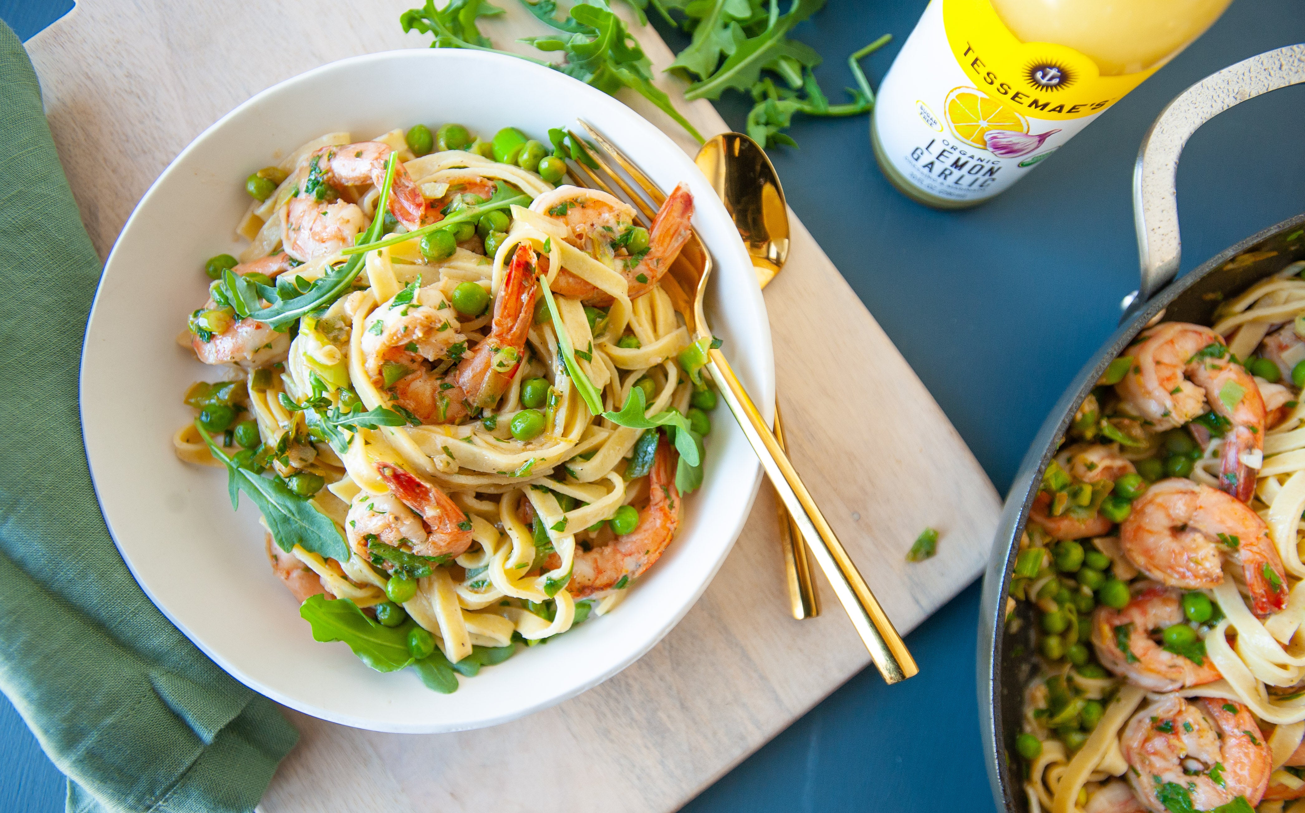 This fast Springy recipe is so much easier than you think! We used Cappellos grain free pasta for this big bowl of lemony garlicky shrimpy love!