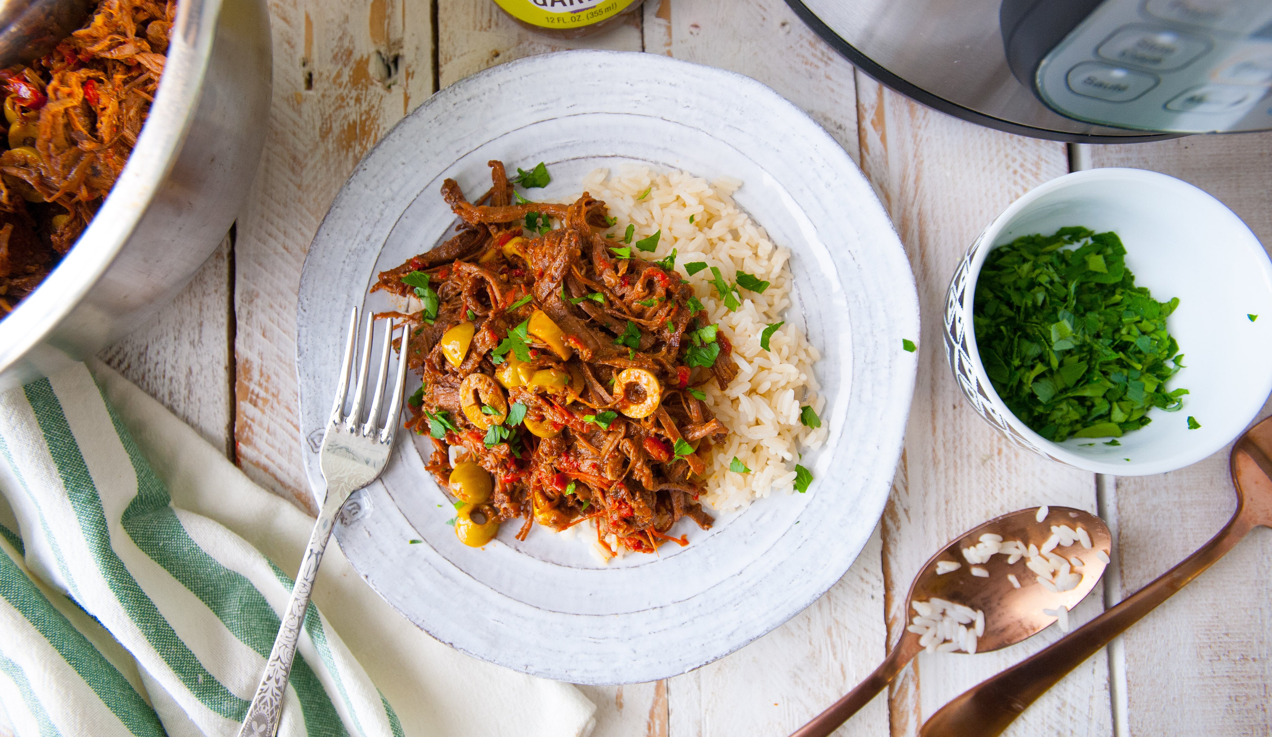 How about some fluffy white rice to go alongside this drool-worthy (and otherwise Whole30-compliant) Instant Pot Ropa Vieja dish?