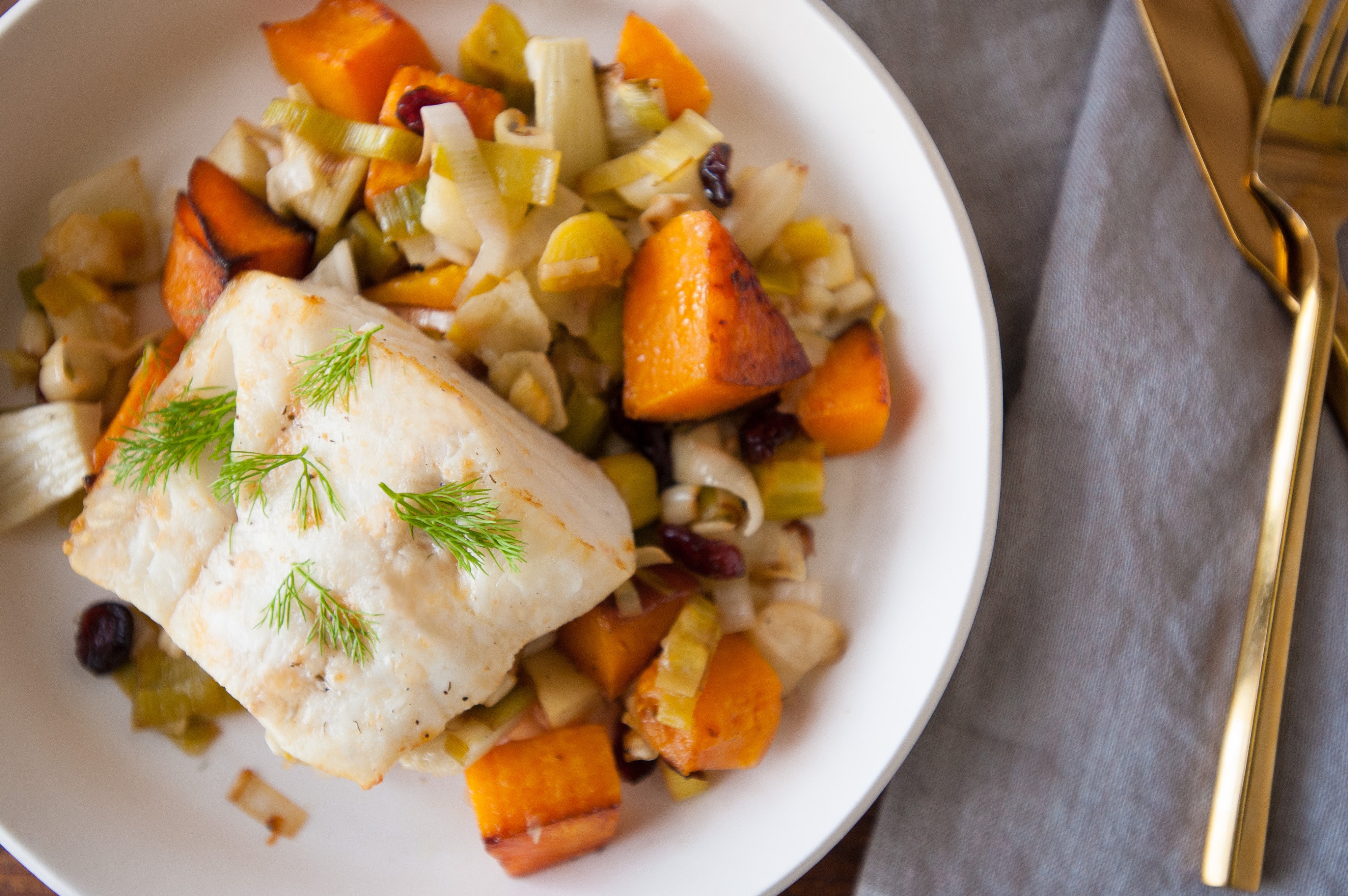 Roasted Cod with Winter Squash & Cranberries
