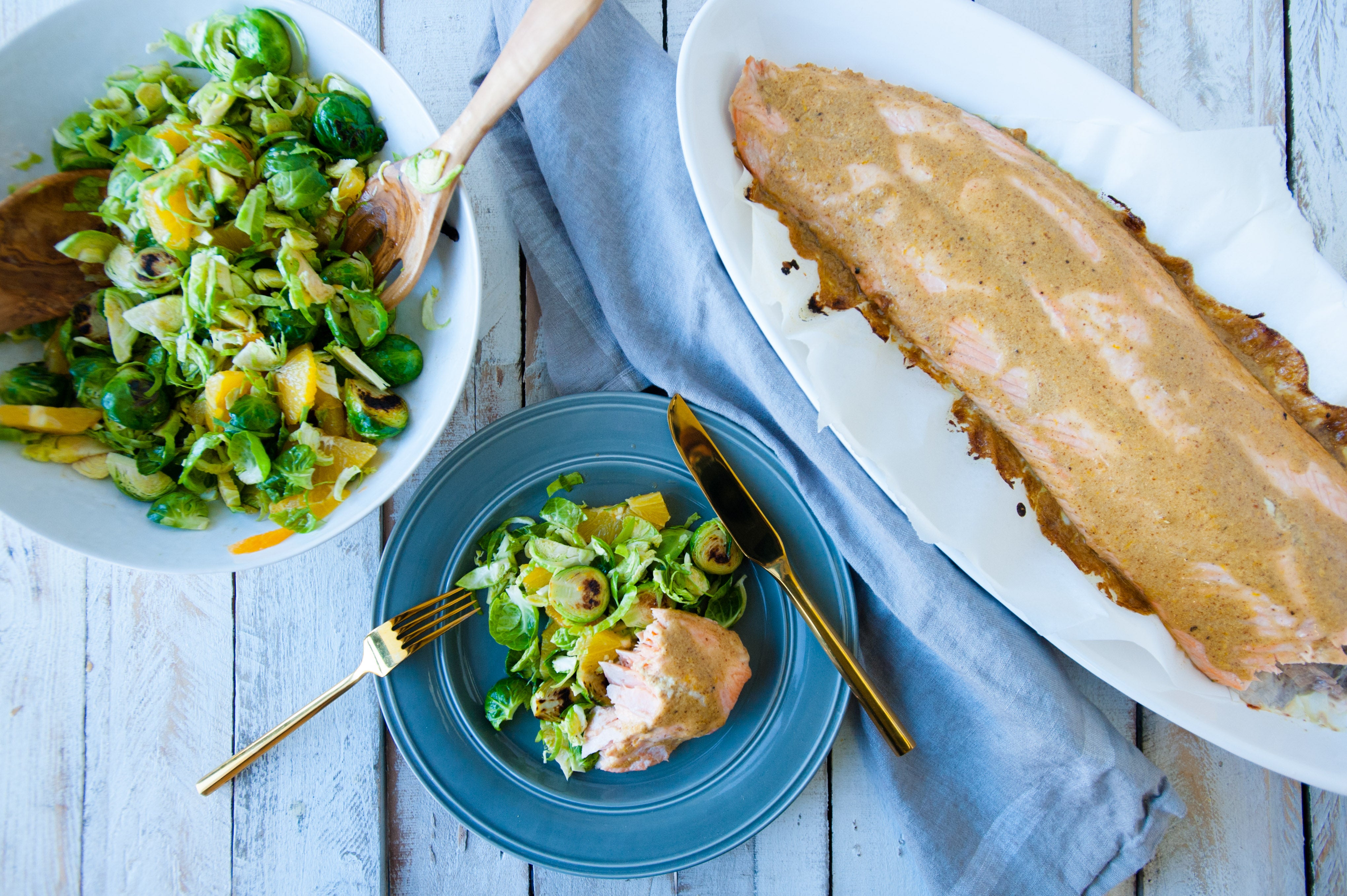 New Year's Eve Dinner: Roasted Salmon with Brussels Sprout & Citrus Salad