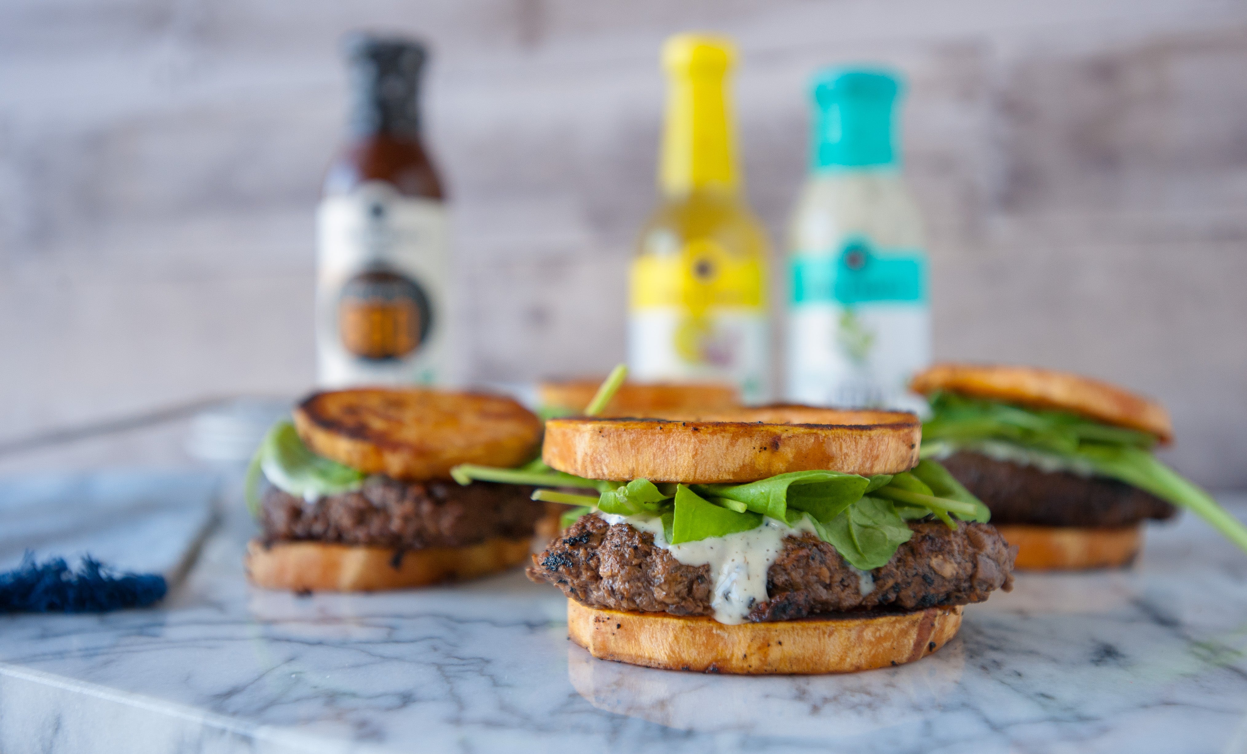 Beef & Mushroom Burgers with Sweet Potato Buns