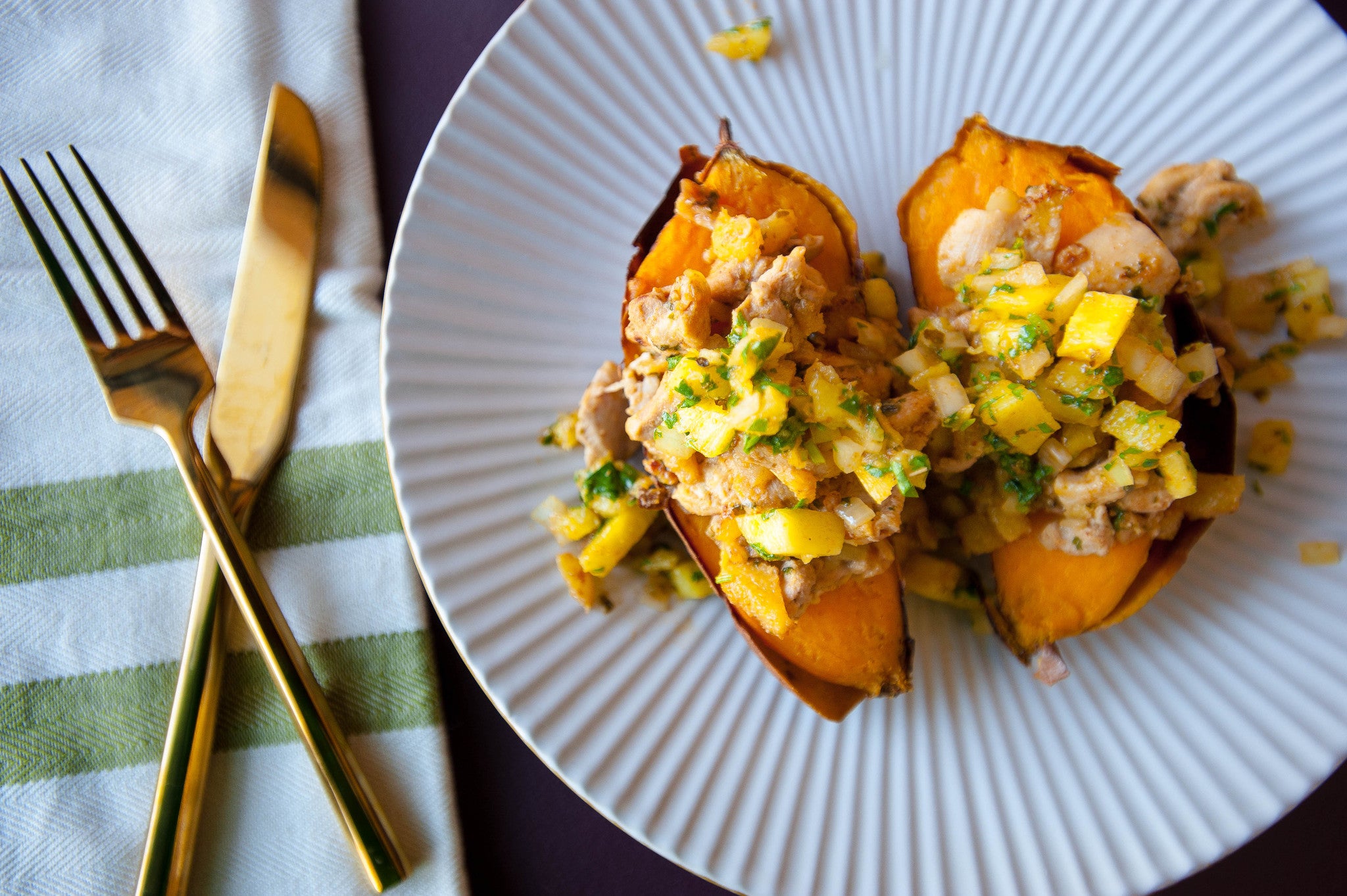 You don't need a spit to make authentic-style tacos al pastor. Here, we opted for chicken thighs instead of pork shoulder to cut down on the cook time, and instead of tortillas, we used sweet potatoes (the papas) for the base. Just when you thought taco night couldn't get any better!