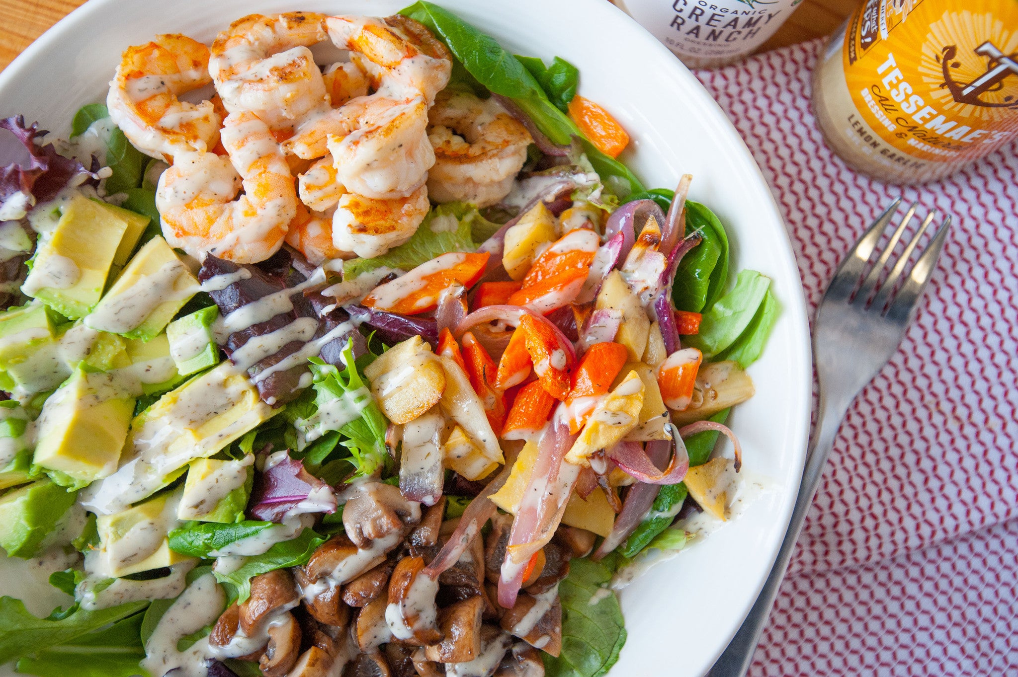 Just when you thought you'd reached saturation point when it came to "bowls" here's another one that will make you rethink your position—this one has sweet shrimp, warm, roasted veggies, diced avocado and a creamy dressing zig-zag over top. Top that, internet!