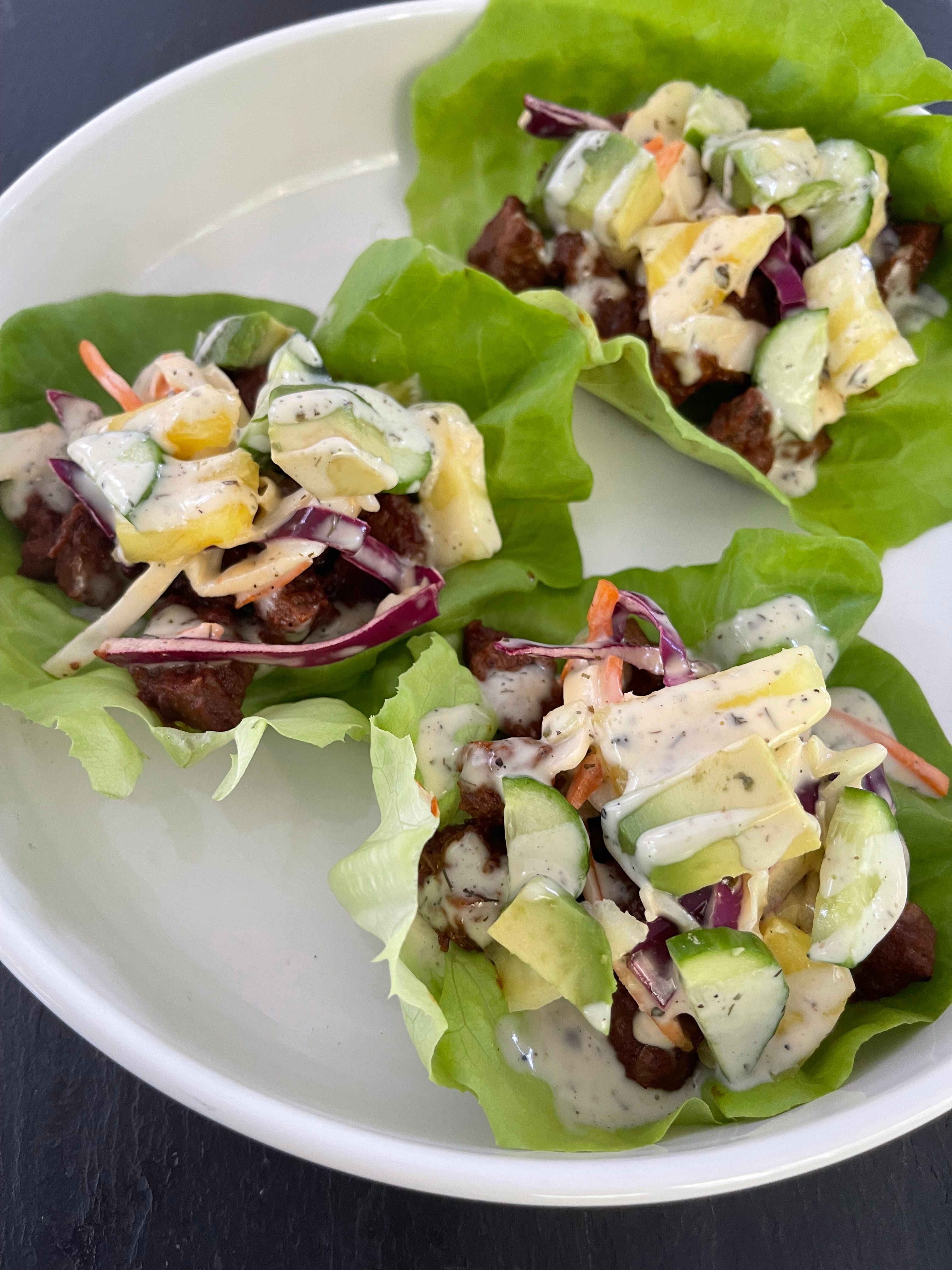 We're big fans of combining sweet and cooling flavors with a little heat, and this Whole 30 Sweet & Spicy Street Steak Taco recipe, topped with sliced pineapple, cucumbers, avocado, and Tessemae’s Habanero Ranch slaw, accomplishes that perfect end-of-Summer combo. This is an easy to customize recipe as well, and is equally delicious when served with white corn taco shells, or on top of a salad.