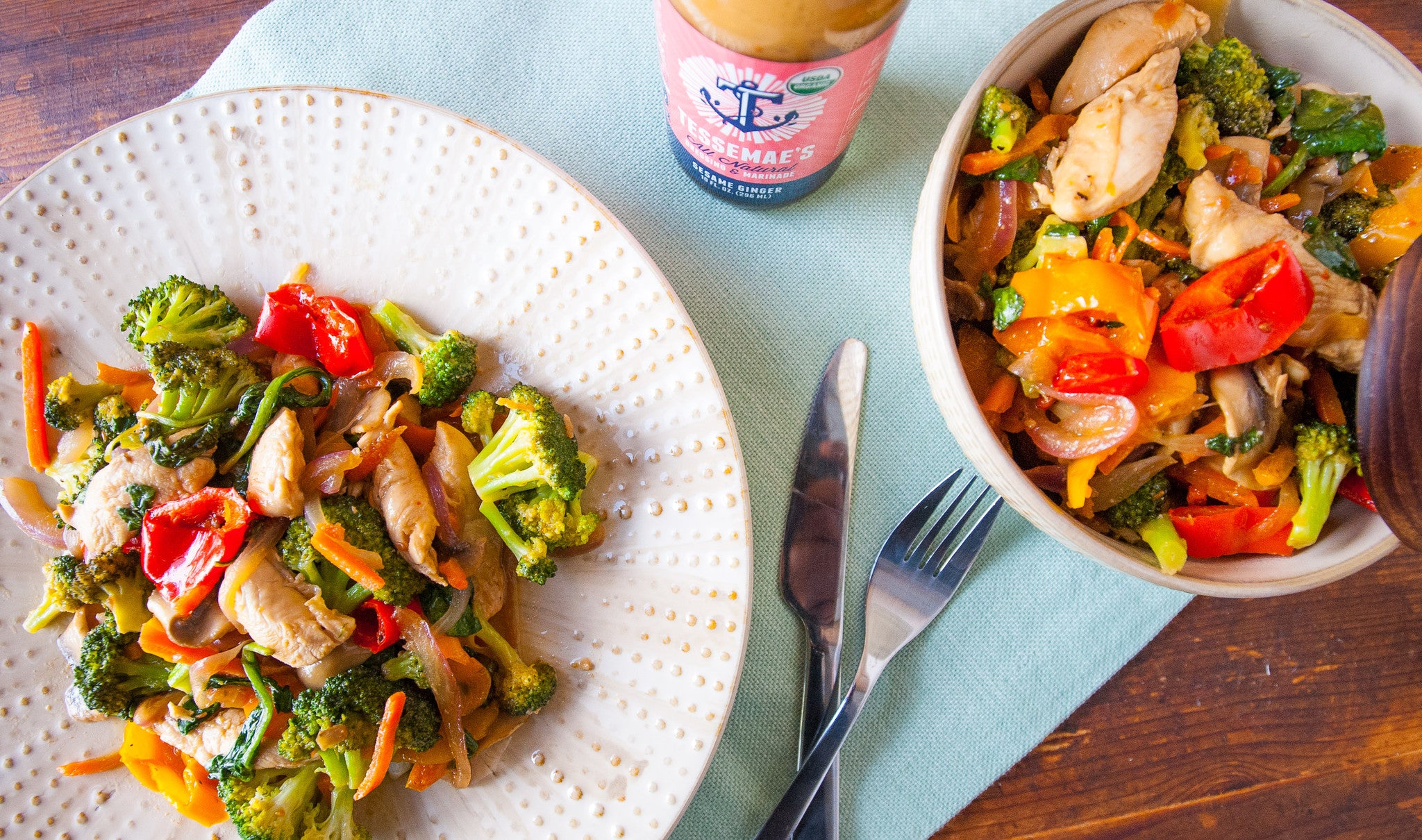 Head to the grocery store's salad bar and stock up on almost everything you need for this dish. Feel free to substitute shrimp, beef, or pork—whatever makes it easier as the countdown to Thanksgiving begins!