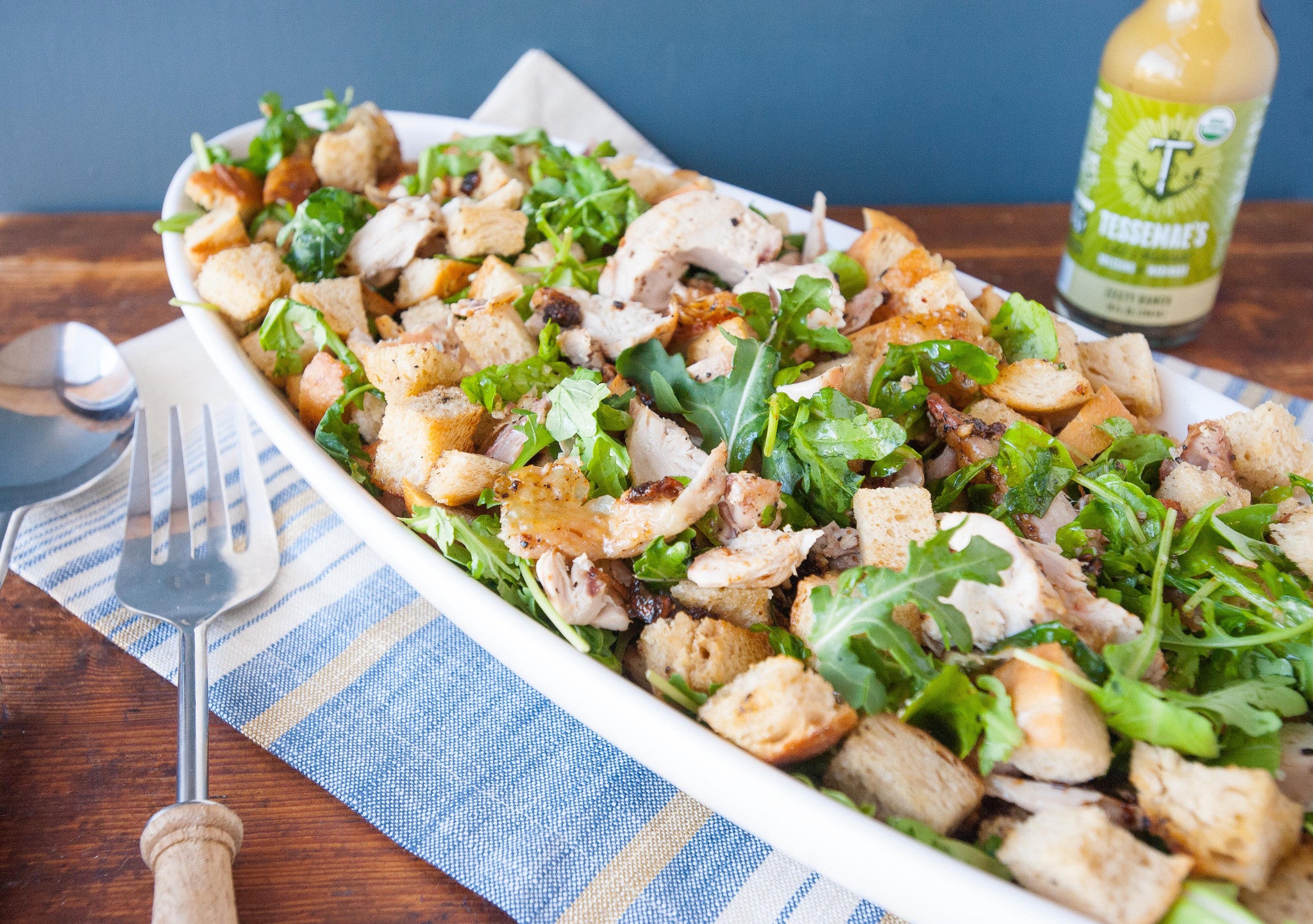 We've cracked the code—the perfect ratio of warm, roasted chicken (yum), homemade, crunchy croutons (double yum) and bright, peppery arugula as a contrast. This is perfect for entertaining, or you know, literally any other time when you need to put food in your mouth.
