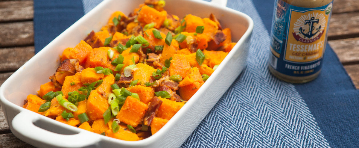 Here’s a lighter version of the usually dense, flavorless potato salads. We subbed in our bright French Vinaigrette, which lets the sweetness of the potatoes and the smokiness of the bacon shine through. Plan on making this a regular addition to summer bbq menus.
