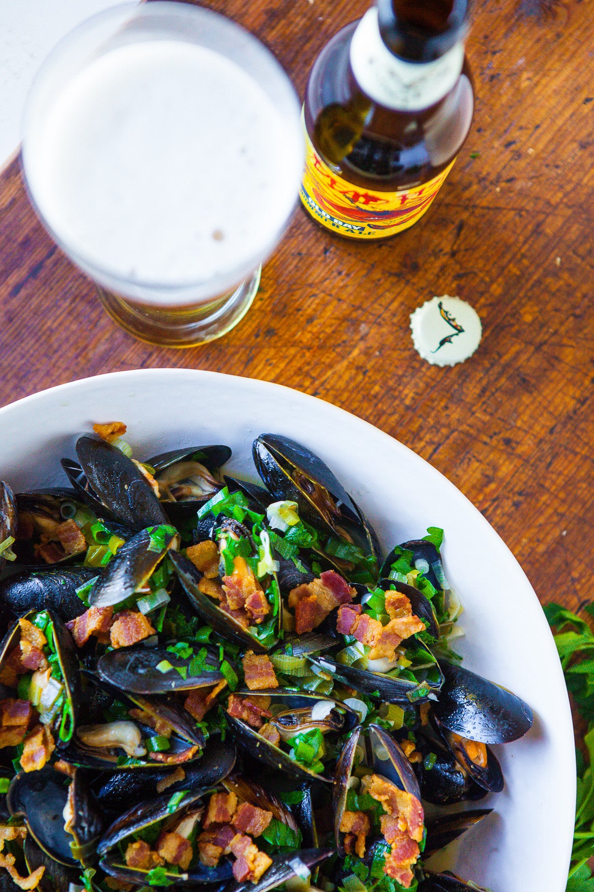 Beer Steamed Mussels with Bacon & Dijon