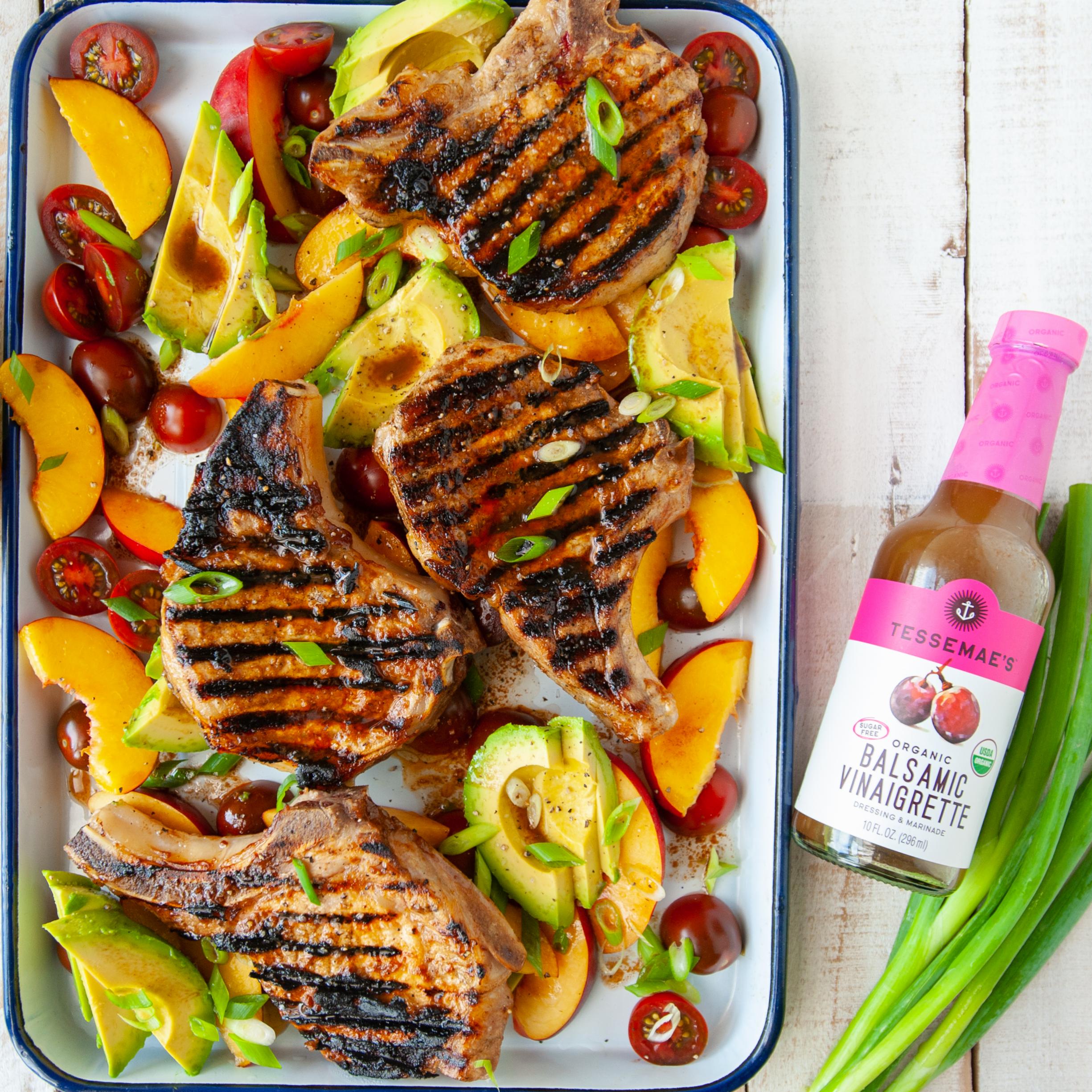 Yes, you can have pork during Whole30! One of our favorite compliant recipes is Pork Chops w/ Tomato, Nectarine & Avocado, featured above! Throw some chops on the grill and while they cook, toss together a juicy side salad. This delicious meal can be done in under 20 minutes with absolutely no guilt!