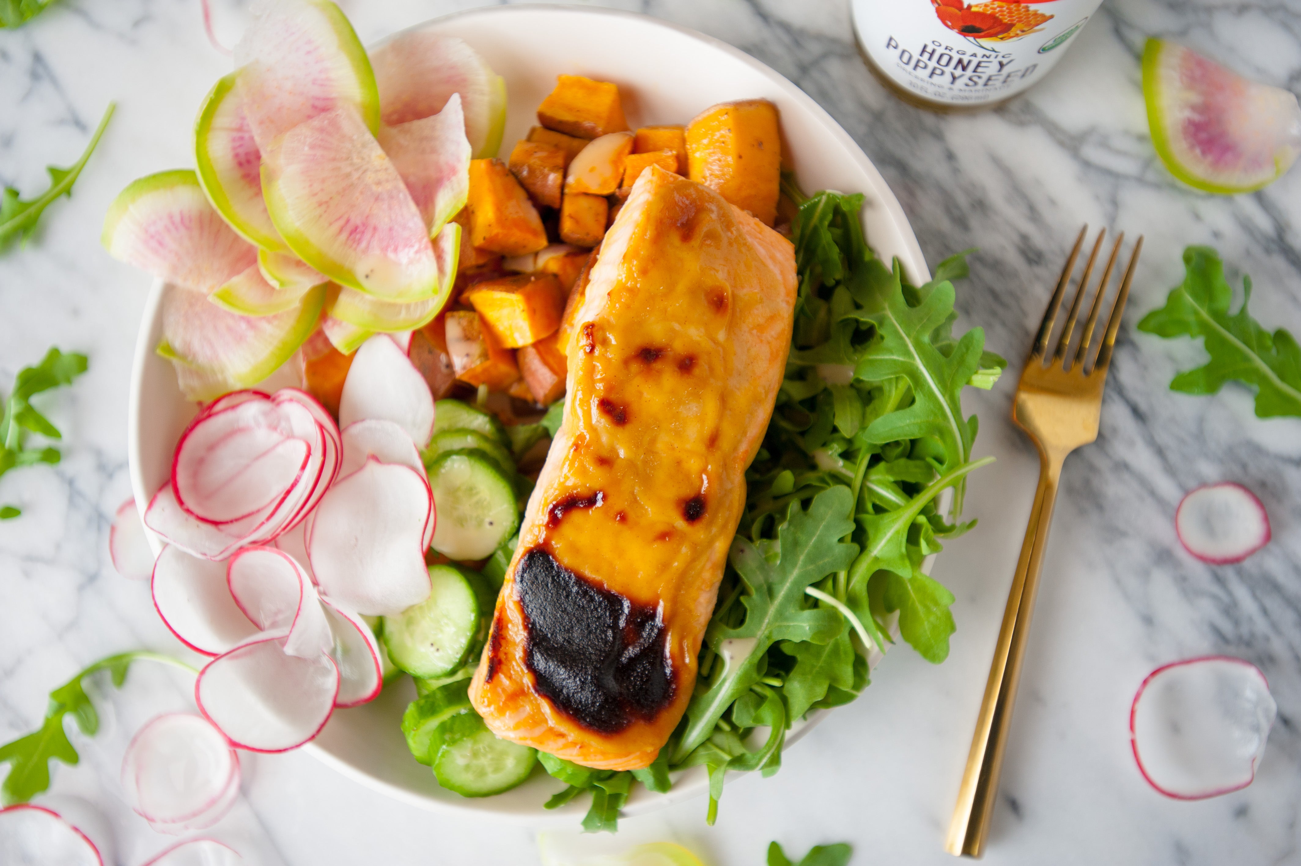 Monday: Salmon Buddha Bowls with Honey Poppyseed