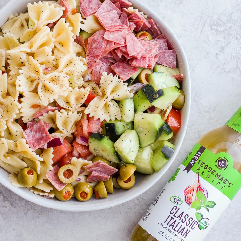 Sometimes, you just can't beat the classics! Our NEW Pantry Classic Italian is just that. It's got zing from red wine vinegar and a traditional Italian herb blend for amazing flavor. We love it as the dressing on this gluten free pasta salad!